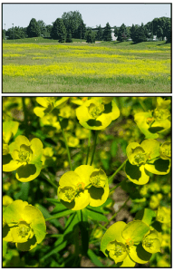 perennial plant that was introduced to North America from Eurasia in the 1800s. It has spread rapidly since introduction, approximately doubling its invaded range every decade through the early 2000s. It now occupies nearly two million hectares of grasslands, rangelands, and open forest edges in the northern United States and southern Canada and is among the most economically damaging invasive plants in the US with losses between 1960-2020 totaling over $1 billion. When damaged, plants produce a latex that can be toxic to livestock, which in turn affects the value of invaded rangelands.